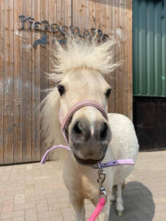 Die süße Dakota ist eine etwa 1,20 m große Ponystute, 5 Jahre jung, und war bereits einmal bei uns. Sie wurde wegen Spat bei uns behandelt, zudem steht dringend ein Hufschmiedtermin an, und der Zahnarzt sollte ebenfalls bald kommen – es wurden kleine Haken an den Zähnen festgestellt.