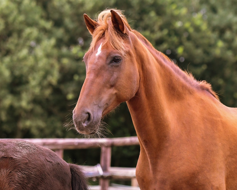 Miguel bringt gesundheitliche Themen mit: Er zeigt beginnende EOTRH und hat eine Achsverschiebung in der Halswirbelsäule, weshalb er nicht mehr geritten werden kann.