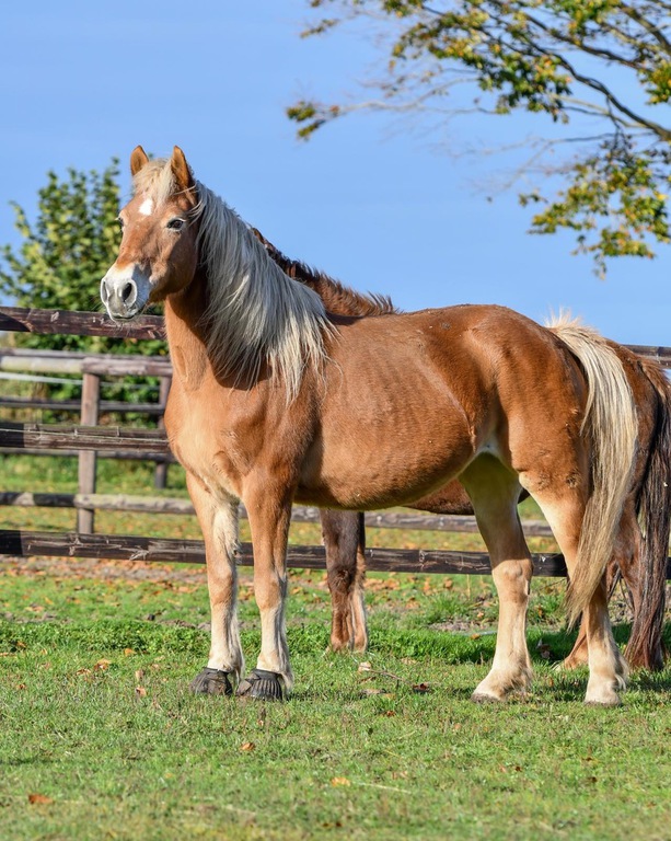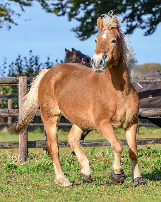 Die hübsche Haflingerstute ist 28 Jahre jung und wünscht sich einen liebevollen Endplatz als Weidebegleiterin. Celina ist kein „Seepferdchen“, sondern fit „wie ein Turnschuh“, wie man uns sagte. Allerdings hatte sie im Jahr 2022 bereits einmal Rehe, was bei ihrer weiteren Versorgung unbedingt berücksichtigt werden muss.