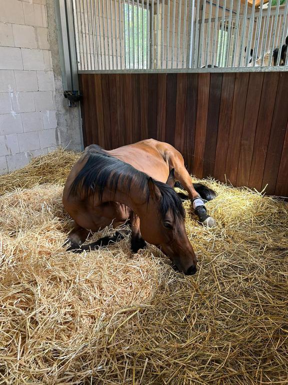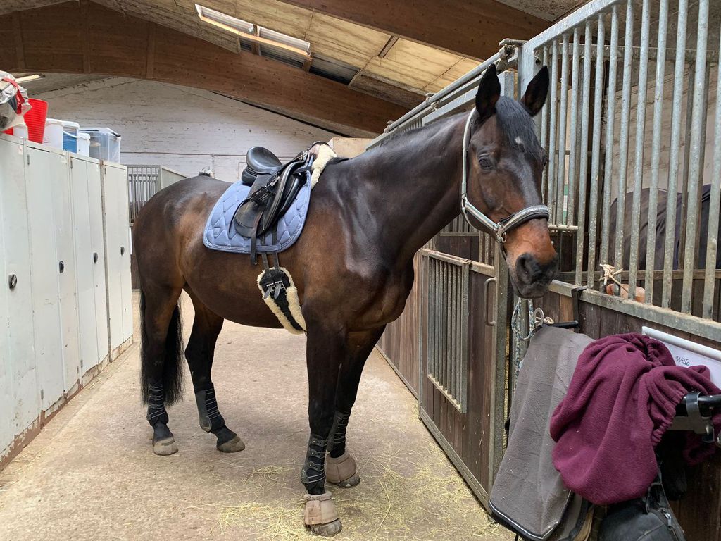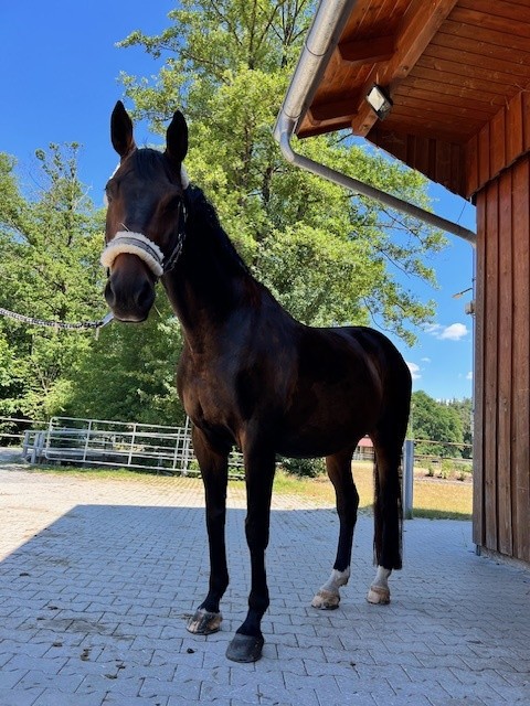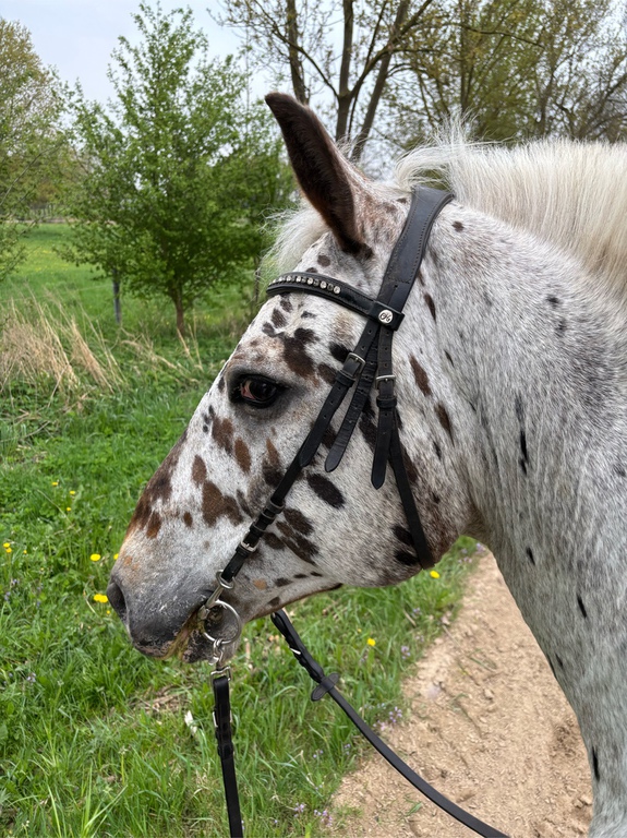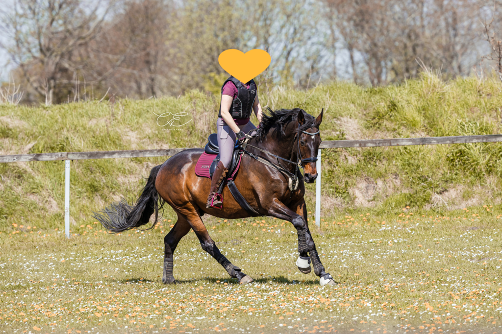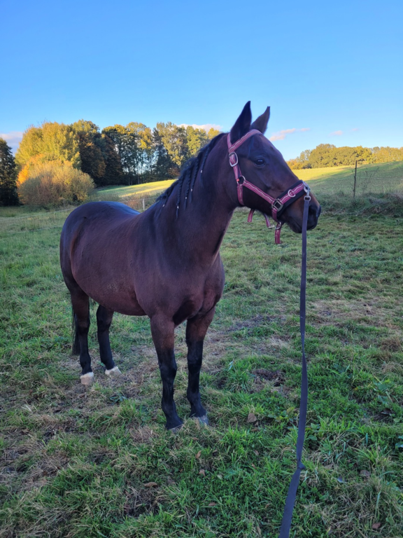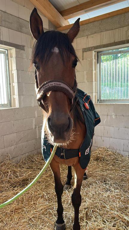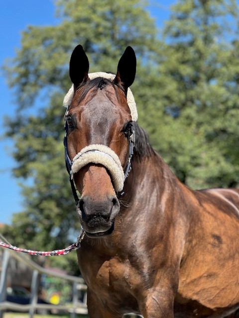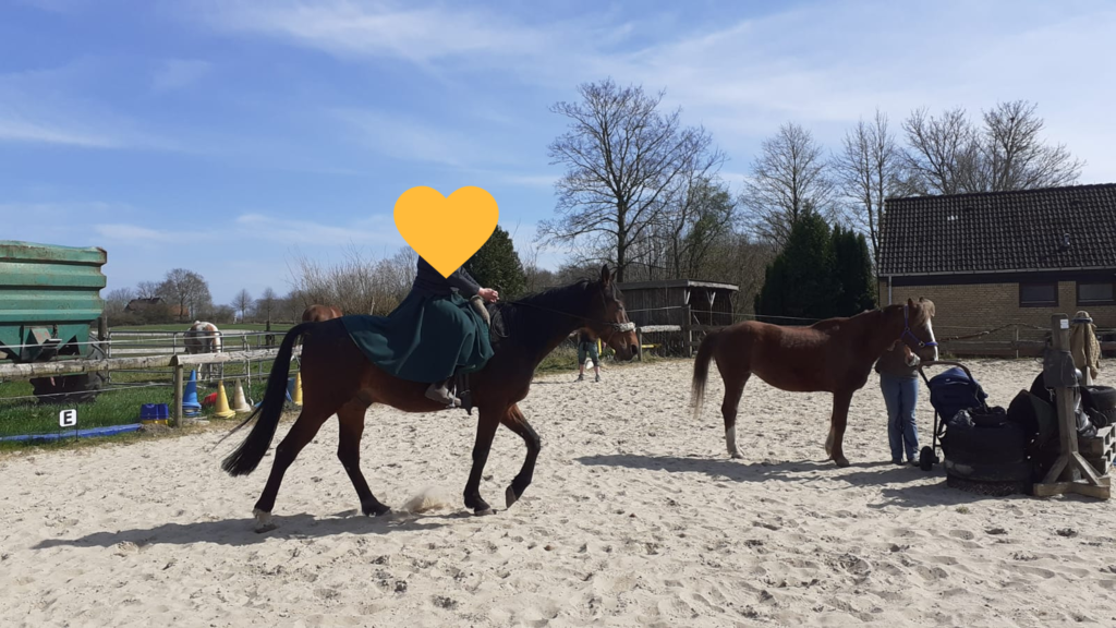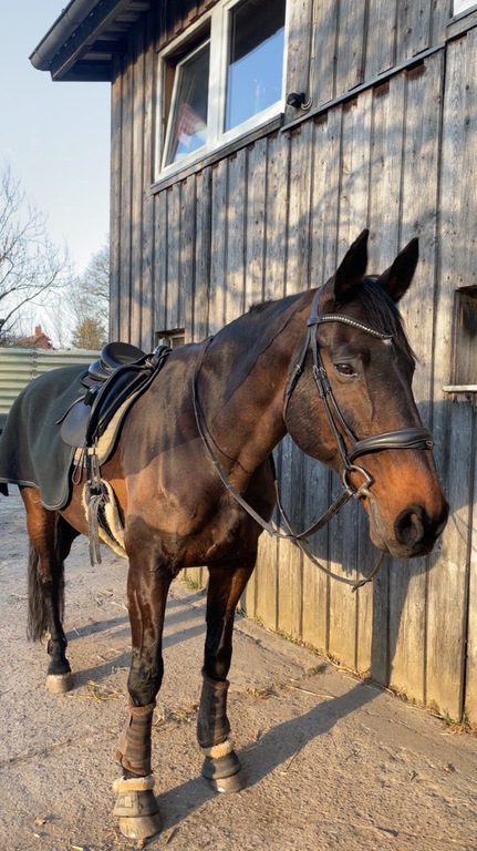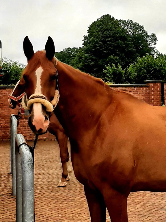 Aufgrund unterschiedlicher Befunde ist sie nicht mehr reitbar (Rückenbefund, Krongelenksschale an beiden Vorderbeinen, (ausgeheilter) Sehnenschaden aus 11/2023).