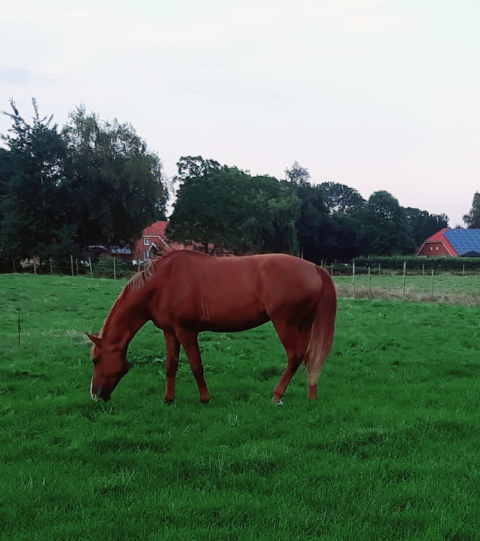 Sie steht aktuell in der Nähe von Rostock und kennt ganzjährige Offenstall-Haltung. Sie ist absolut robust, außer der Zyste nie krank gewesen und wirklich ein kleines Goldstück.
