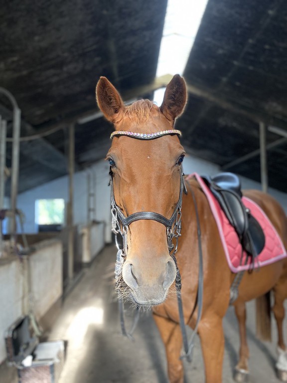 Galopprennbahn und geniest seit 4 Jahren das umschulen zum Reitpferd. Sie befindet sich auf A Niveau in der Dressur sowie im Springen. Wegen meiner aktuellen Krankheit hat sie leider an
