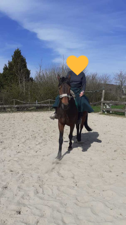 Milonga hat bis 2019 polo gespielt dann habe ich sie übernommen und seit dem ist sie nur noch Freizeitpferd. Sie hatte in ihrer Polozeit einen Sehnenschaden und einen Griffelbeinbruch, weshalb sie nur bedingt belastbar ist, aber gemütliche Ausritte sind kein Problem, sie geht gerne spazieren und ist sehr unerschrocken! Sie geht auch ohne probleme alleine raus und ist insgesamt sehr zuverlässig. Sie war bisher immer das ranghöchste Pferd. Eine Zeit lang hat sie gelegentlich gehustet, aber durch regelmäßiges inhalieren haben wir es in den Griff bekommen, den Inhalator würde ich ihr natürlich mitgeben. Sie steht zur Zeit in einem Offenstall mit zwei weiteren Pferden und das würde ich mir auch weiterhin für sie wünschen. Mir wäre einfach nur wichtig das sie ein schönes zu Hause hat, indem sie alt werden kann gut versorgt ist und den Bauch gekrault bekommt. Ich gebe Sie schweren Herzens und nur aus finanziellen Gründen ab.