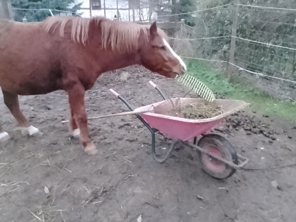 Er kennt das Hofleben mit Kindern, Hunden, Traktoren und zeigt sich dabei meist neugierig und unerschrocken. In der Herde ist er eher ranghoch und leider nur mit Wallachen verträglich.