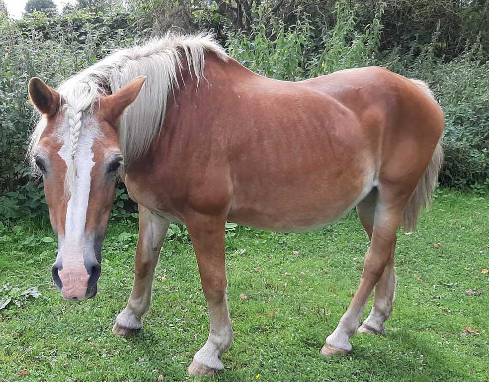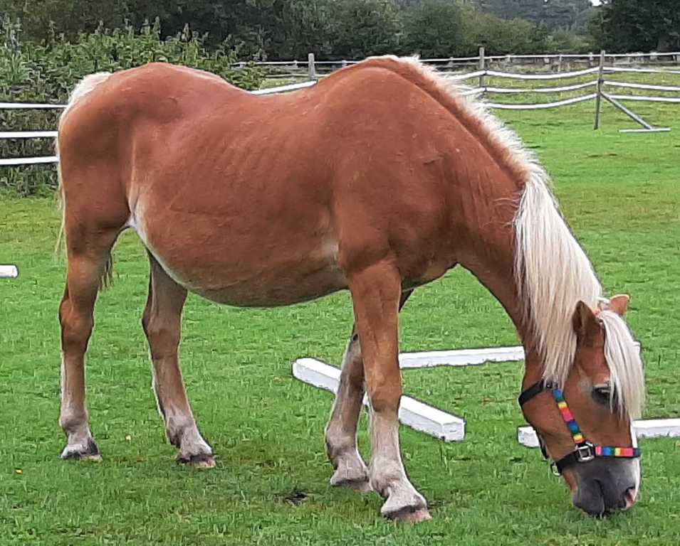 Haflinger-Quarter-Mix-Stute, 22 Jahre, Stockmaß ca. 156 cm mit allem Zubehör abzugeben. Sie ist ein Seepferdchen, aber seit 5 Jahren symptomfrei und hat altersentsprechende Arthrose. Sie ist jedoch immer noch voll reitbar und liebt es bewegt zu werden. Sie ist ein reines Freizeitpferd und liebt Ausritte. Auch für Kinder oder Angstreitet geeignet. Wenn Sie Vertrauen zu Ihrem Menschen hat, ist sie ein absolutes Verlasspferd