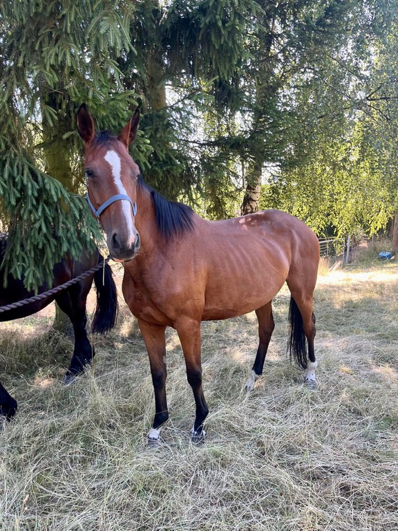 Leider ist sie wegen eines alten Griffelbeinbruchs sowie einem starken Reheschub nicht mehr reitbar.