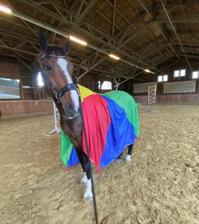 Blue ist 2015 geboren und somit 10 Jahre alt. Sie ist ein Irish Sport Horse und 160cm groß. Charakterlich ist sie freundlich und verzeiht viel, sie arbeitet in der Boden-, Longen-, Handarbeit etc. sehr gut mit und ist dort auch mit vielem bekannt.