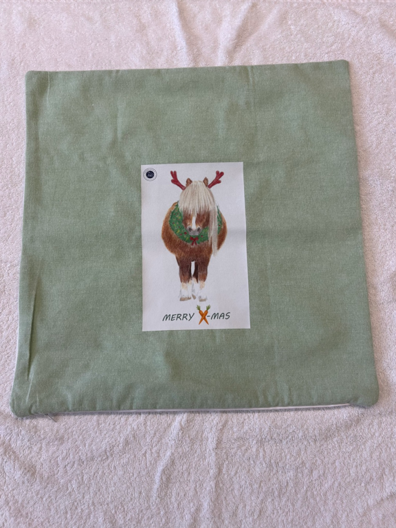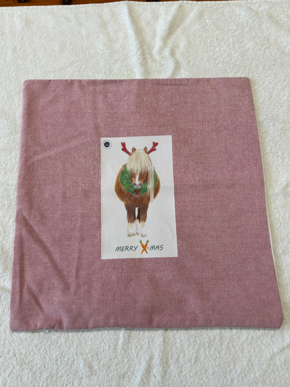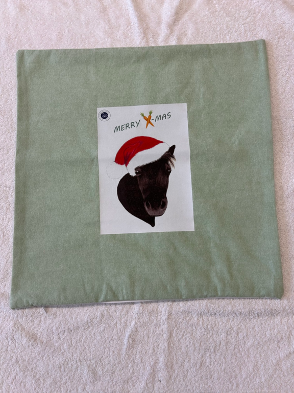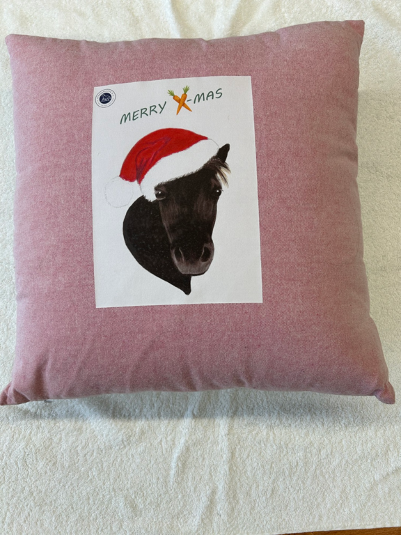 Weihnachtliche Kissen miit selbstgezeichneten Motiven unserer jugendlichen ehrenamtlichen Helferin Marie