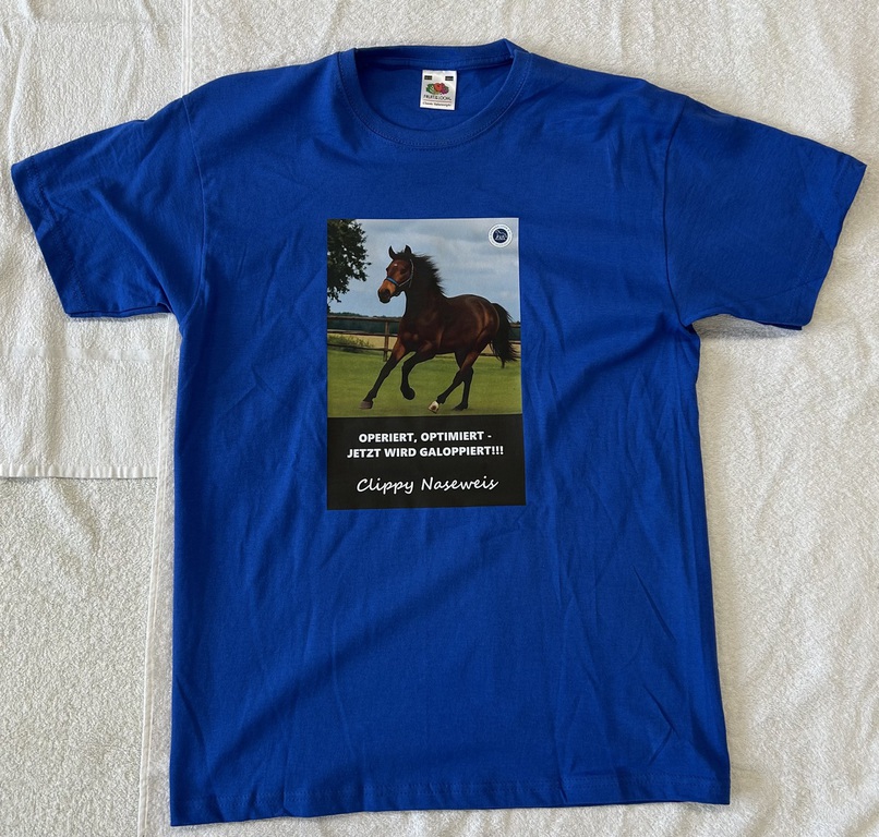 Alle Produkte, die ihr hier seht, werden von uns in der Pferdeklappe bedruckt. So können wir die Kosten niedrig halten und den Erlös direkt in unsere Vereinsarbeit fließen lassen.